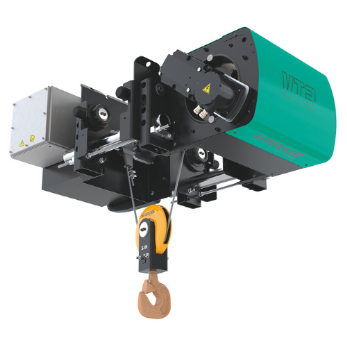 The EUROBLOC VT electric wire rope hoist is designed for heavy-duty lifting, handling loads from 10,000 to 250,000 kg with precision and reliability. Featuring advanced closed-loop inverter technology, it ensures rapid, variable lifting speeds and smooth operation, making it ideal for demanding industrial applications.