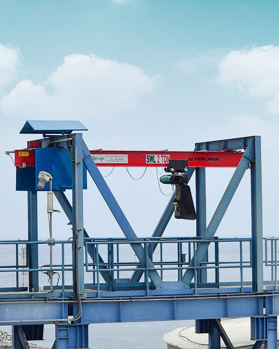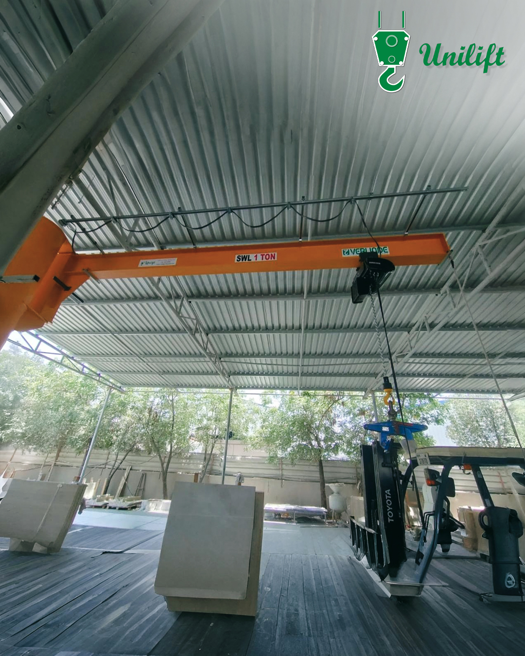 - Cranes Installed: 1 TON Manual Slewing Jib Crane with Verlinde Electric Chain Hoist