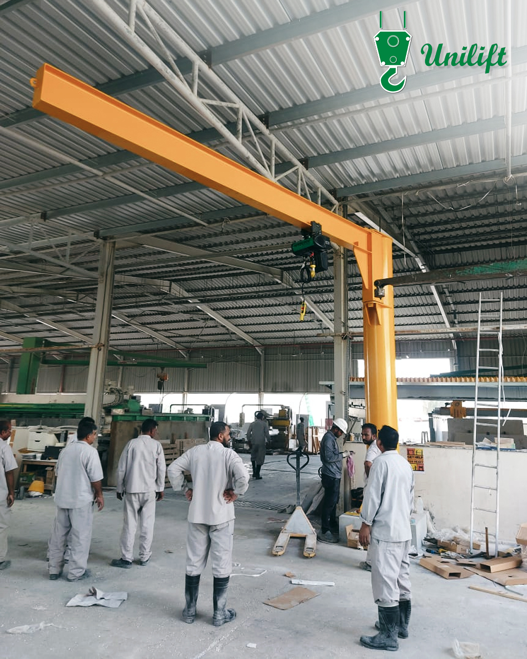 1 Ton Manual Slewing Jib Crane equipped with a Verlinde Electric Chain Hoist