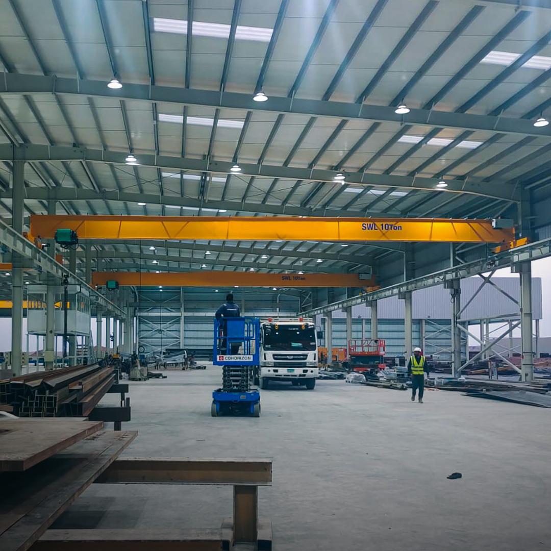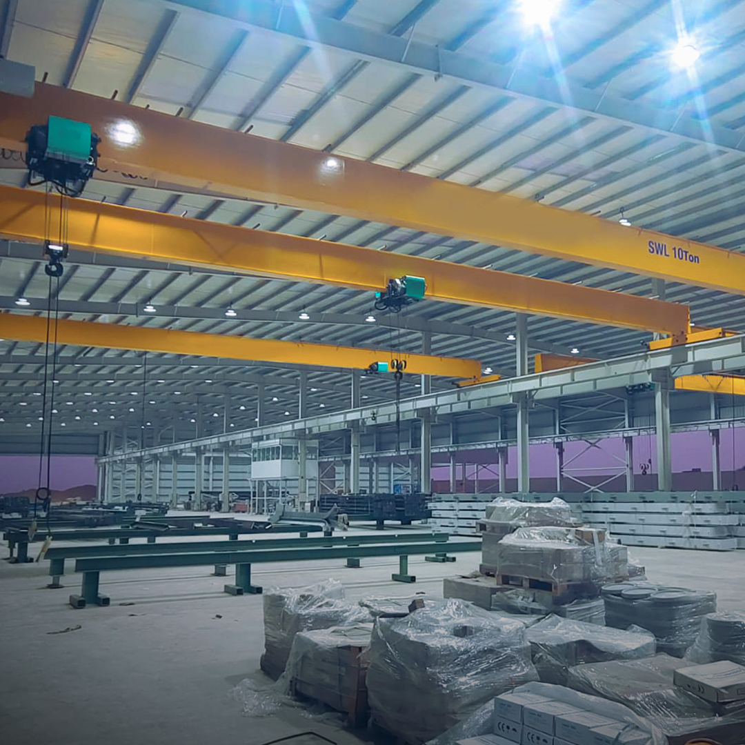 - Cranes Installed: 5-ton and 10-ton Single Girder EOT Cranes